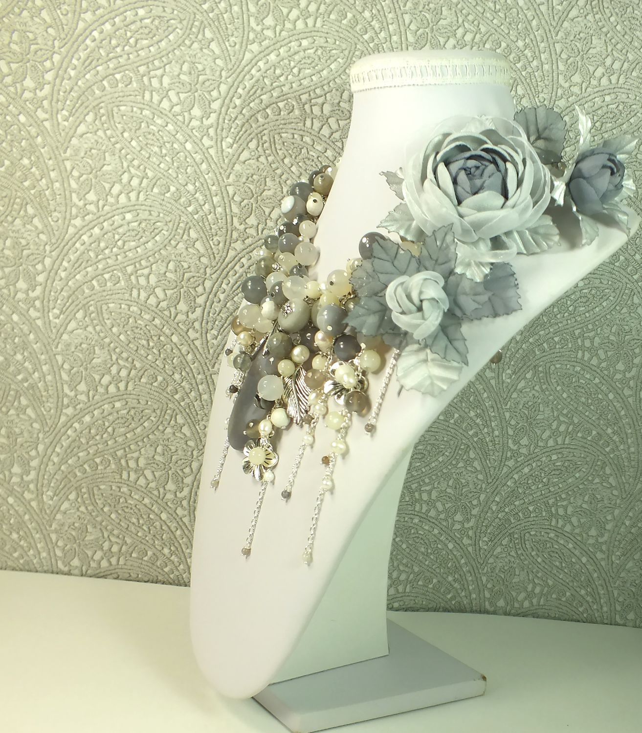 Вашему вниманию предлагается руководство по изготовлению ожерелья ручной работы из ткани. Вы можете сделать это украшение из обрезков ткани, а также применить завалявшуюся без дела цепочку, всевозможные пуговицы, броши и ленточки. Может быть, Вам придут на ум еще какие-либо идеи по поводу других оригинальных элементов такого украшения ручной работы. Также для создания подобного ожерелья Вам понадобится проволока, ножницы, плоскогубцы, иголка и нитки.