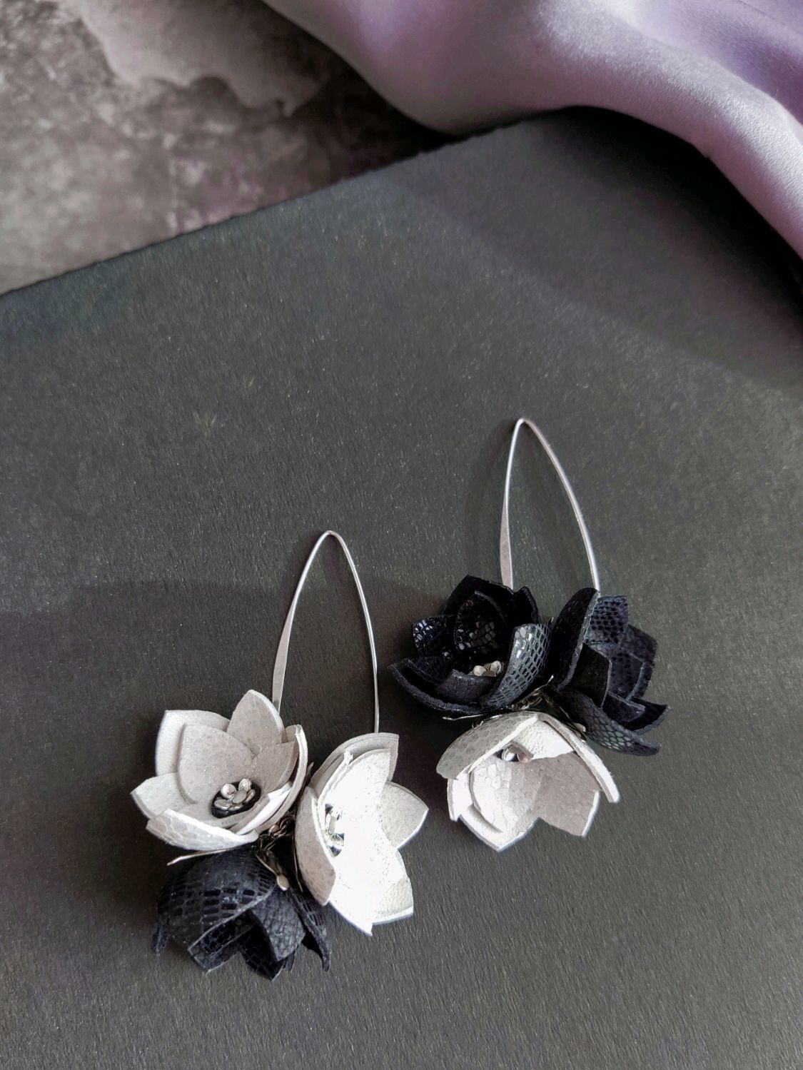 Самая приятная стадия работы – это создание непосредственно самой сережки. Для этого нам понадобится фурнитура: кольца и подвески (швензы), которые можно найти в магазинах, торгующих различными швейными материалами. Для начала с помощью плоскогубцев разожмите кольца, и проденьте в них швензы — специальные приспособления крючкообразной формы. У вас получилась подвеска. Теперь в кольца проденьте листочки, и все, серьги из кожи, сделанные своими руками готовы.