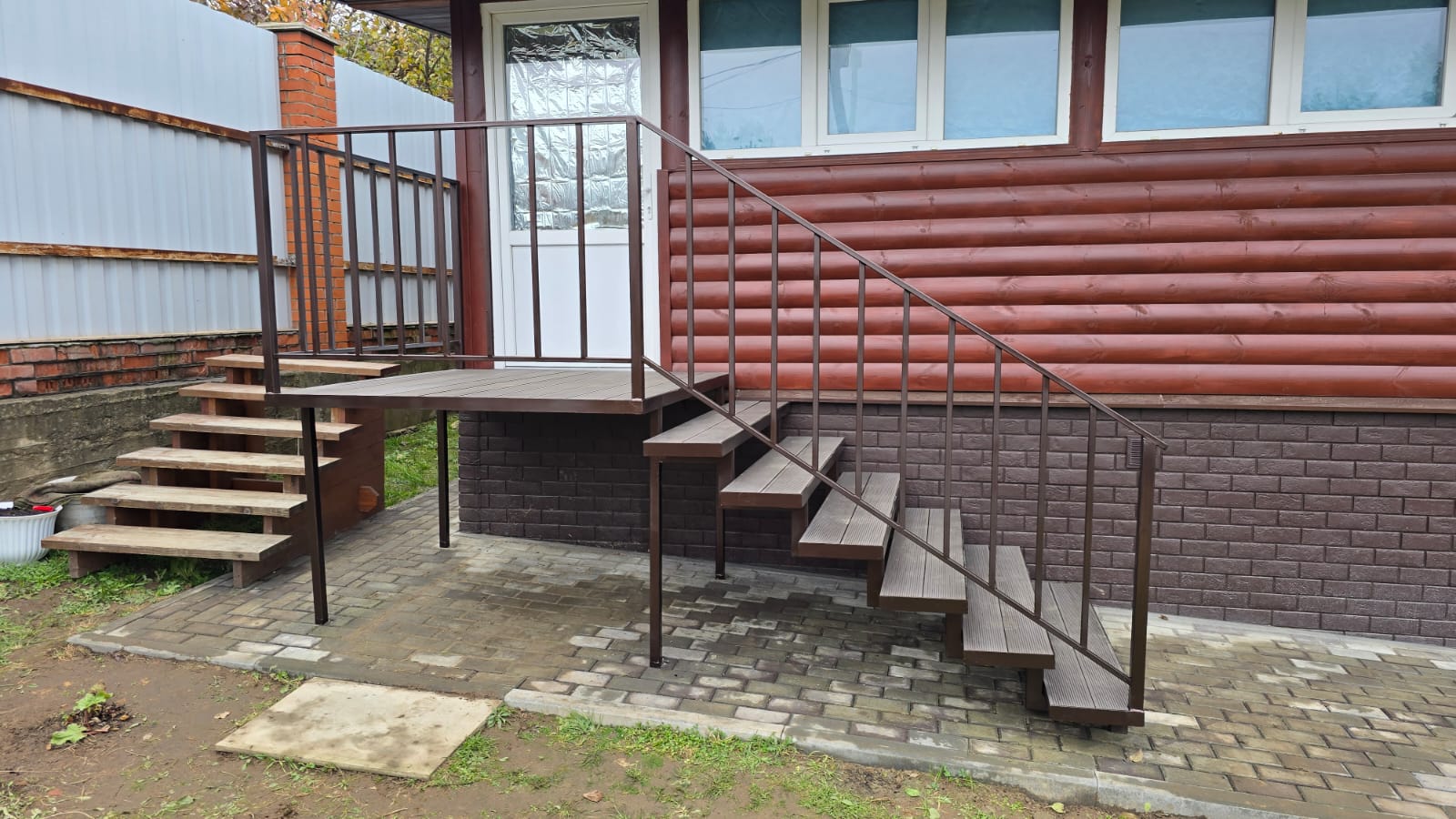 Рассмотрим процесс возведения деревянной маршевой лестницы на обычное крыльцо:
