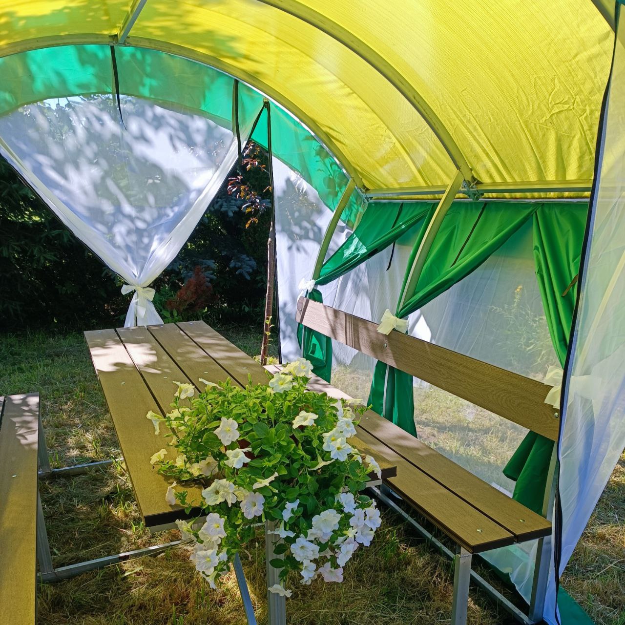 Также выпускаются и мобильные шатры и беседки со своим каркасом, они фактически представляют собой готовые летние строения с противомоскитными вставками. Эти беседки из сетки мобильны, легко устанавливаются в любом месте и легко переносятся на новое место.