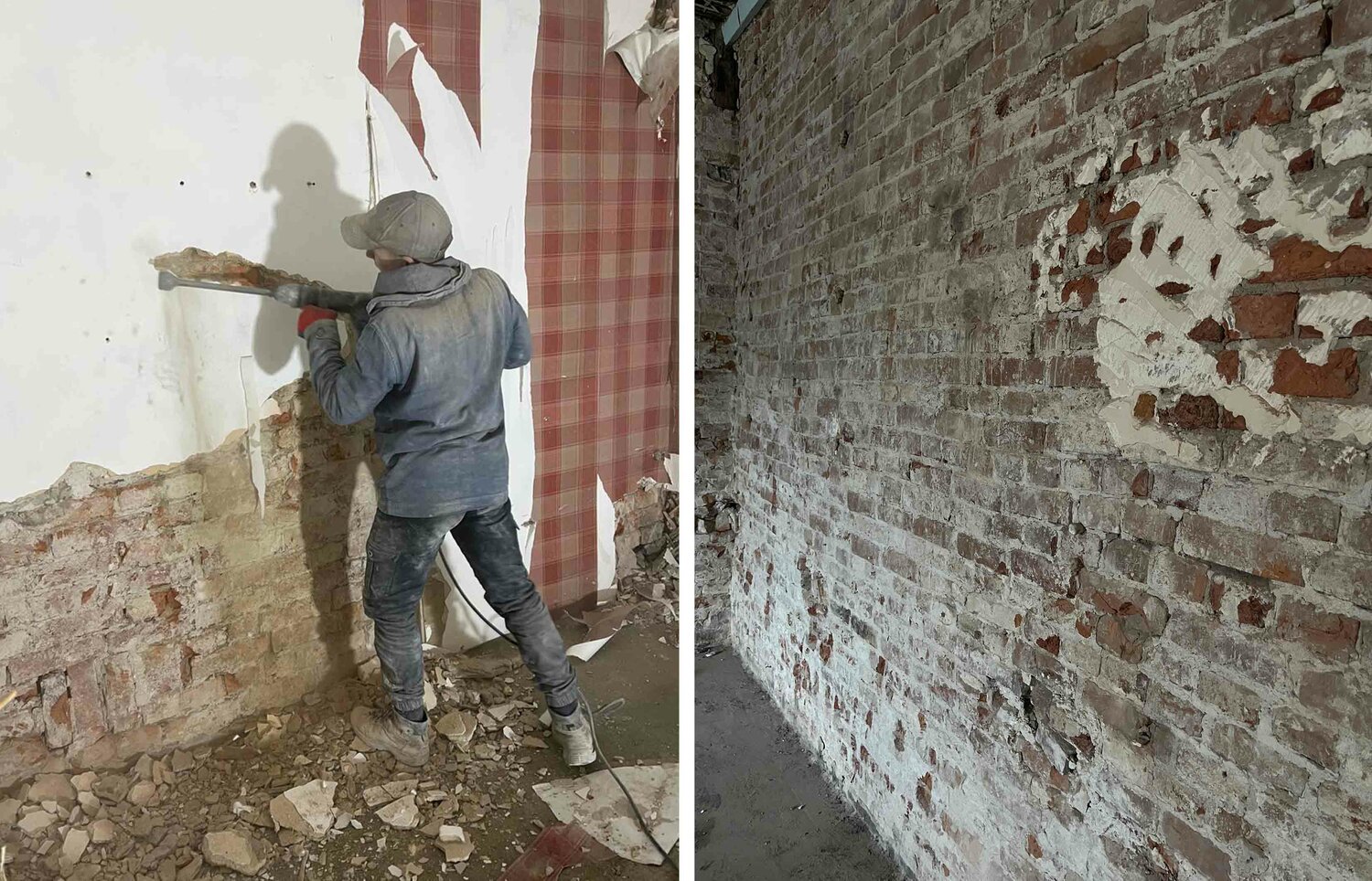 На примере собственного ремонта: демонтаж штукатурки в квартире выполнялся частично самостоятельно, а частично — силами наемных рабочих. Причиной привлечения помощников стала банальная нехватка времени — закончился отпуск. Интересно, что не все профессиональные рабочие охотно берутся за такую работу, поскольку процесс сопряжен с огромным количеством пыли и требует значительных физических усилий.