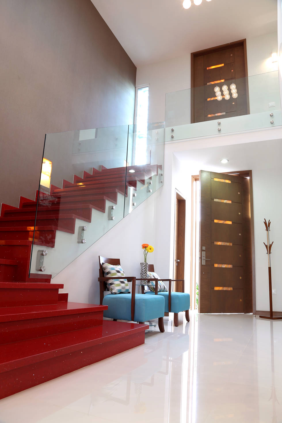 Использование цвета — популярный и эффективный приём. Это может быть как контрастная акцентная стена, отделяющая, например, гостиную от столовой, так и разные цветовые акценты в декоре — например, красные элементы в прихожей и синие в зоне отдыха. Этот метод создаёт чёткое визуальное разграничение, не занимая физического пространства.