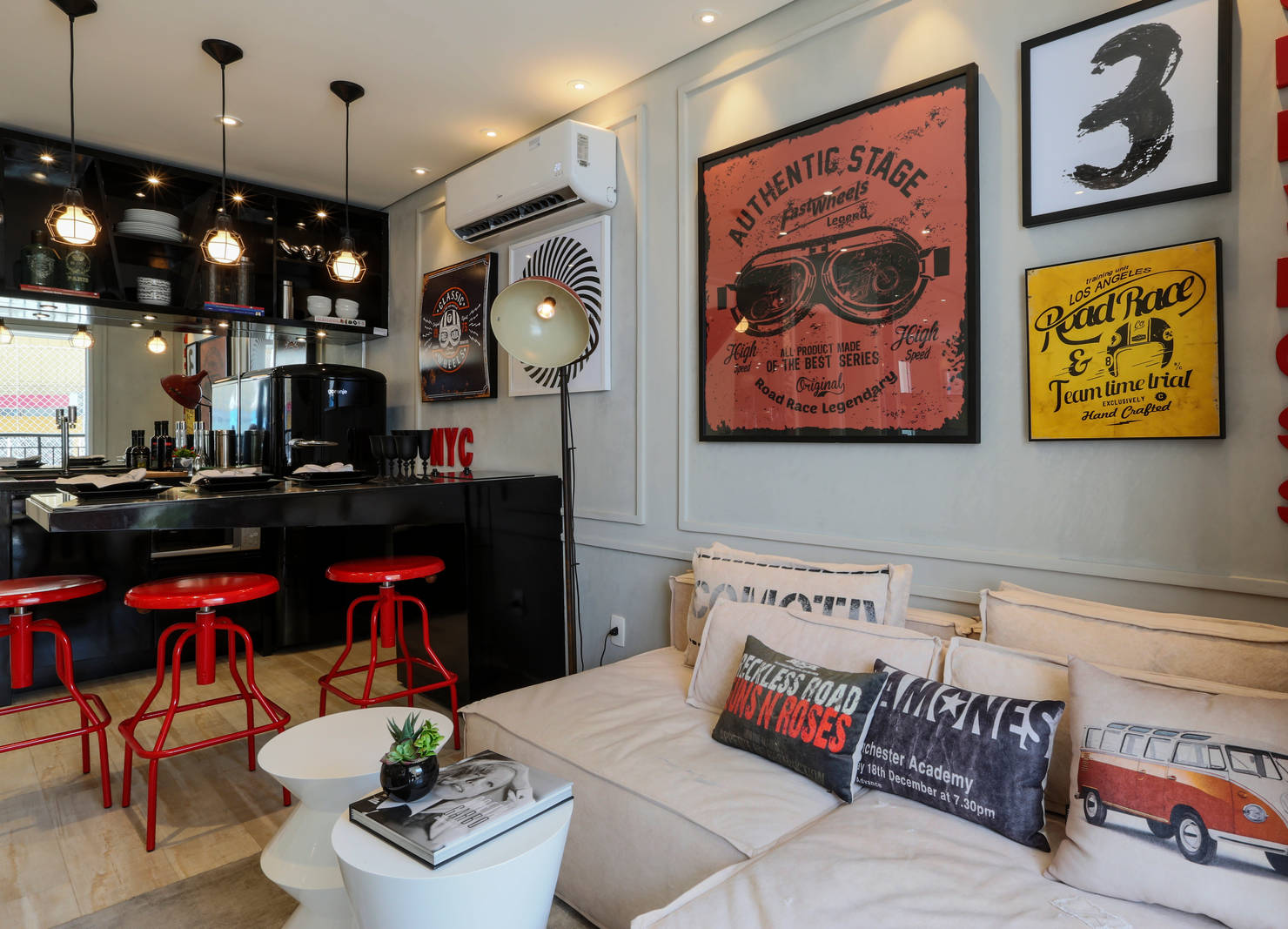 Интеграция в гостиную: кухня с барной стойкой открытой планировки