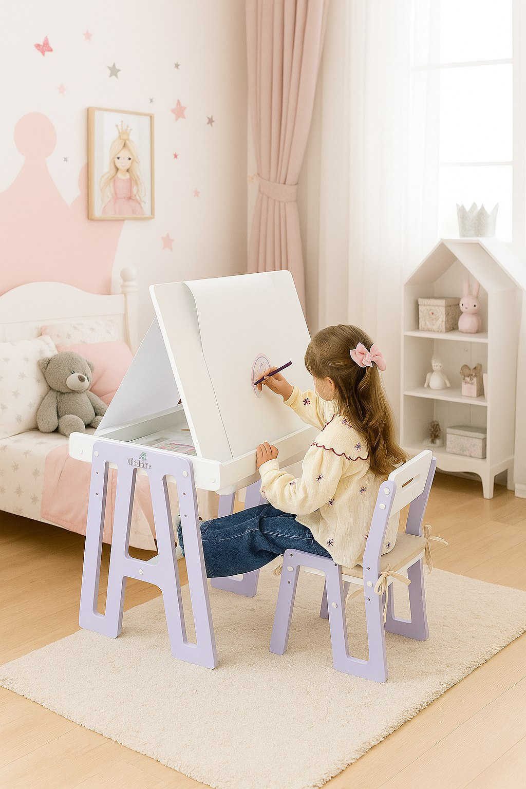 Зелёный цвет отлично настроит ребёнка на учёбу, а также поможет расслабиться. Этот цвет рекомендован очень активным и подвижным детям. Он снимет эмоциональное напряжение и будет направлять энергию ребёнка в спокойное русло. Не стоит использовать ядовитые и неестественные оттенки зелёного, они плохо подходят для детской.