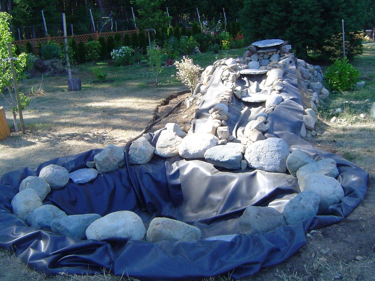 Технология создания ложа для водопада аналогична технологии строительства декоративного пруда: