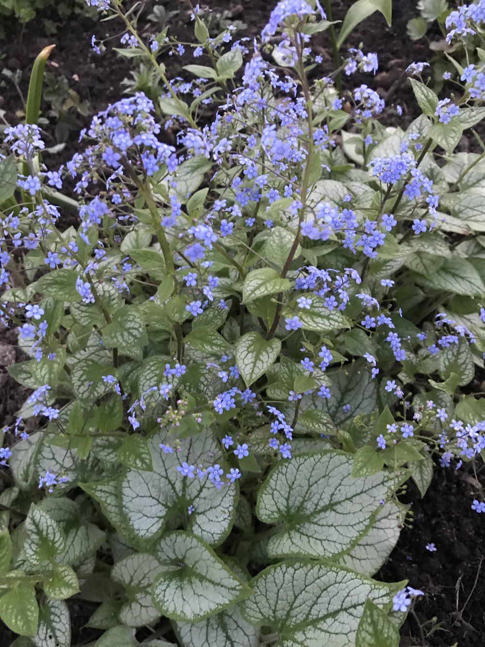 Брунера (Brunnera) — многолетнее травянистое растение из семейства Бурачниковые. Несмотря на то, что по своей природе это трава, взрослый экземпляр больше похож на пышный кустарник высотой до 55-60 см. Мощные, опушенные черешки несут крупные листья характерной сердцевидной формы. Именно благодаря этой архитектуре брунеру можно использовать не только для оформления клумб и рабаток, но и для создания невысоких живых изгородей или бордюров.