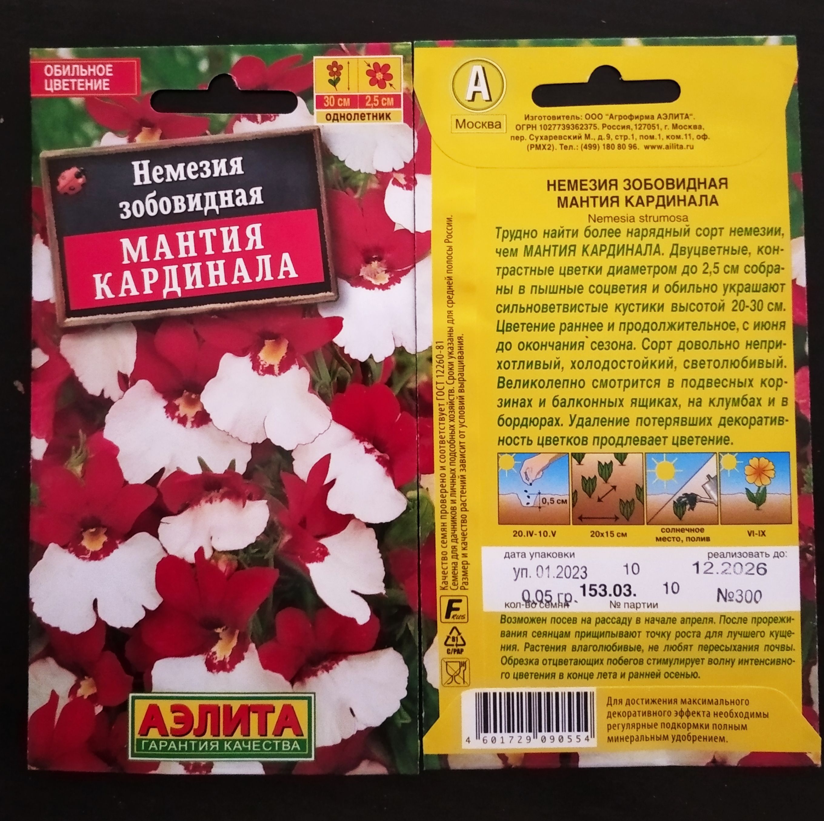 Пышноцветущая немезия | Менее распространенный, но очень изящный вид. Образует кустики до 40 см высотой, покрытые мелкими, чаще однотонными светлыми цветками. Обладает скромным, но милым очарованием, напоминающим полевые цветы. Семена встречаются реже, что добавляет ей эксклюзивности. |