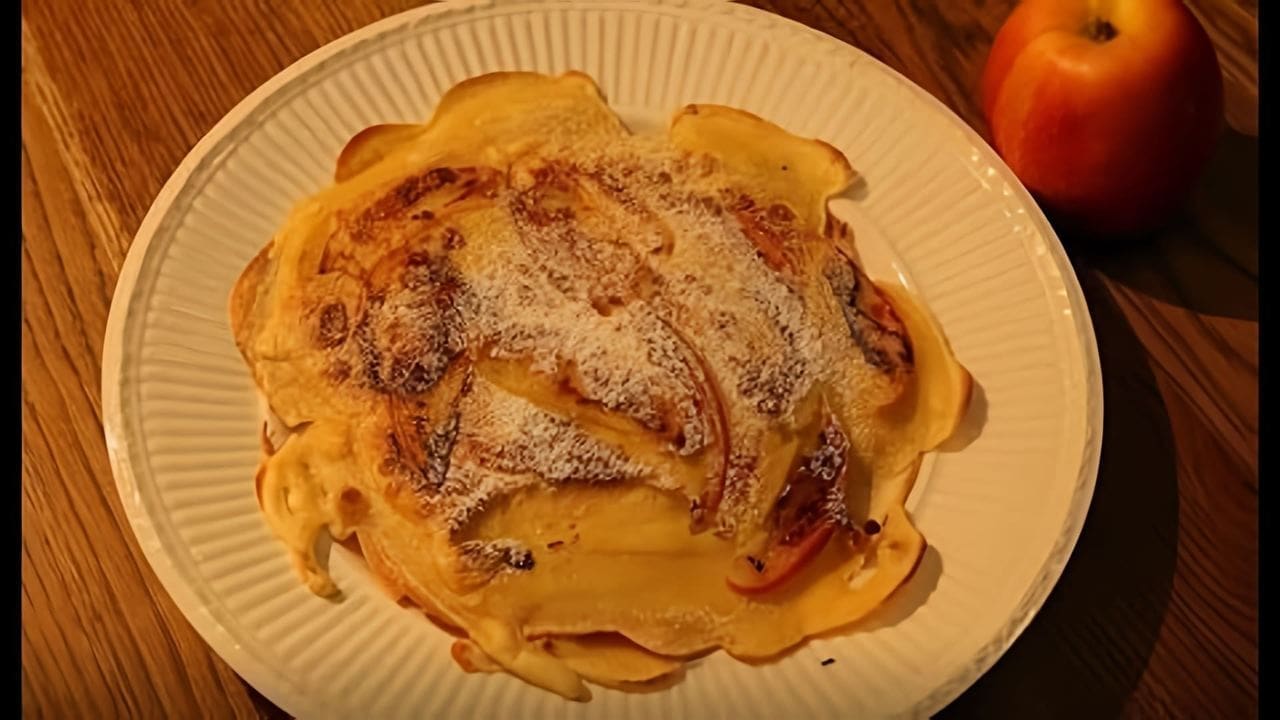 Этот рецепт идеально подходит для тех, кто хочет быстро приготовить вкусное блюдо. Яблочные дольки, запечённые прямо в тесте, создают эффект припёка, делая блины особенно ароматными.