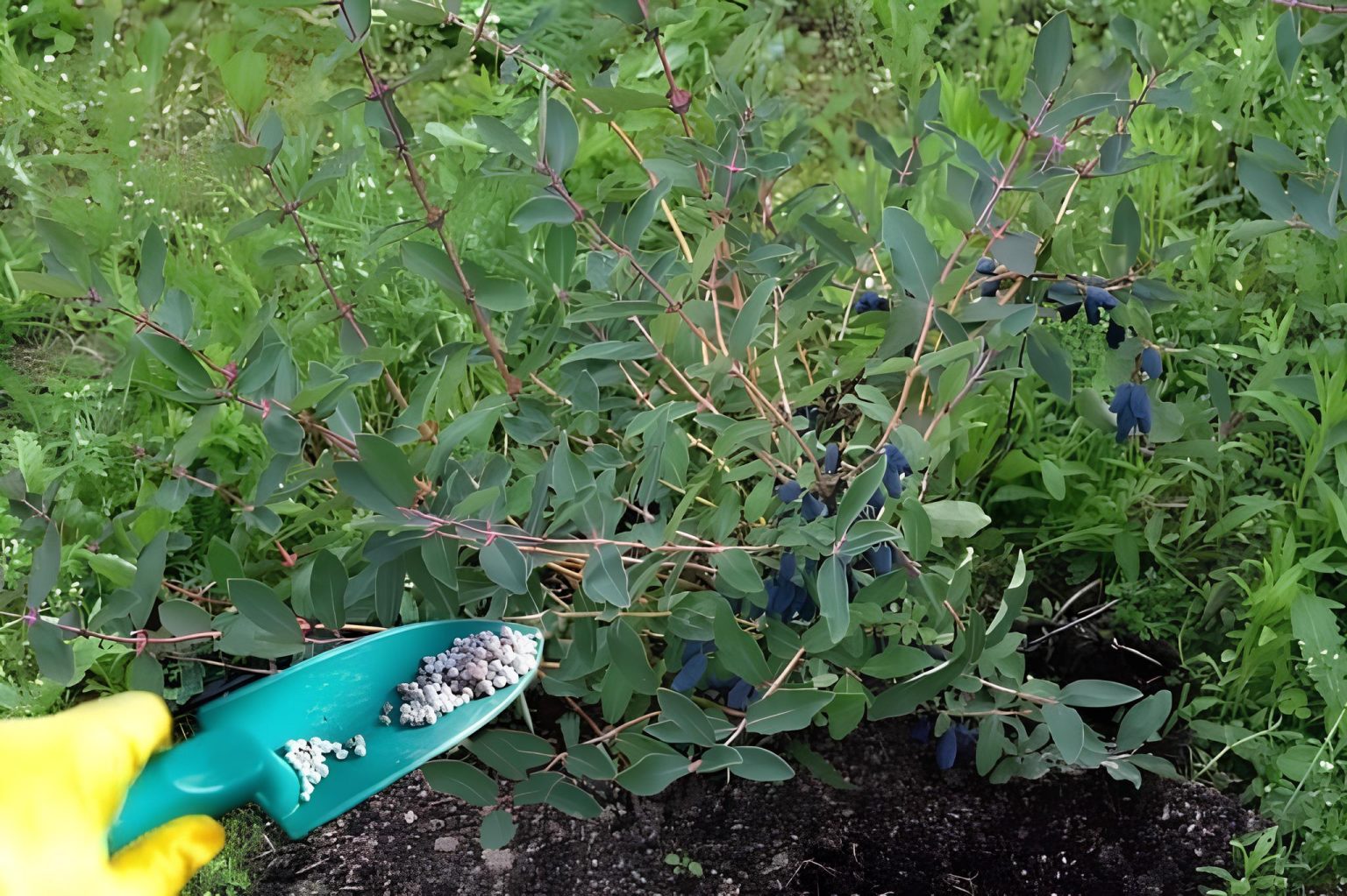Несмотря на общую неприхотливость, жимолость требует подготовки почвы. Перед посадкой участок перекапывают, внося органику (перегной, компост, навоз) и минеральные удобрения: суперфосфат и калий. Объём и состав подкормок напрямую зависят от исходного плодородия грунта: чем беднее почва, тем больше должна быть посадочная яма и количество вносимых удобрений. Важно помнить, что жимолость не любит кислых почв, поэтому при необходимости проводят известкование.