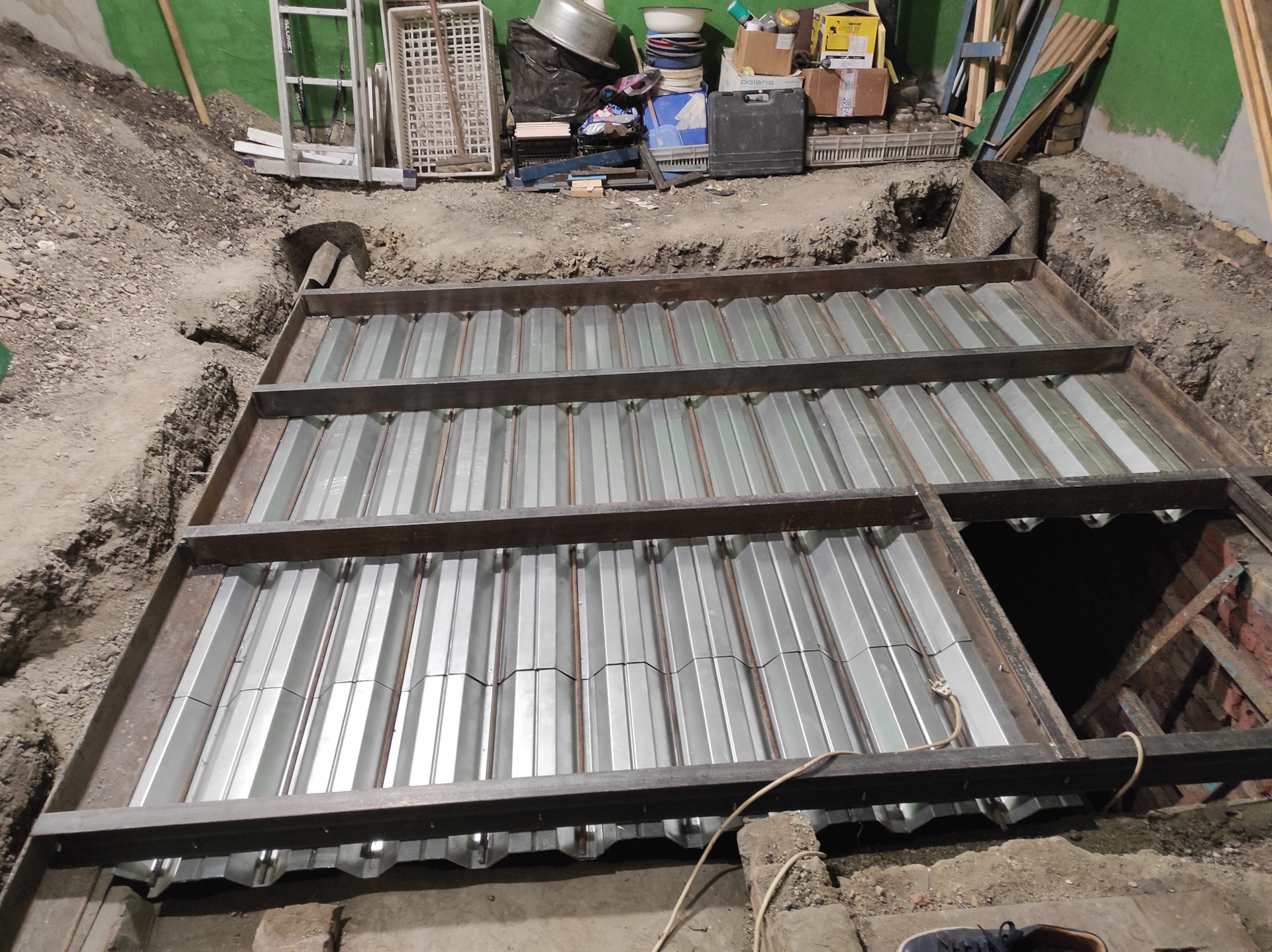 После заливки бетону необходимо дать набрать прочность. Для этого потребуется около 28 дней (в зависимости от условий). Такое перекрытие обладает высочайшей прочностью и может служить основанием для постройки гаража или другой легкой конструкции поверх погреба.