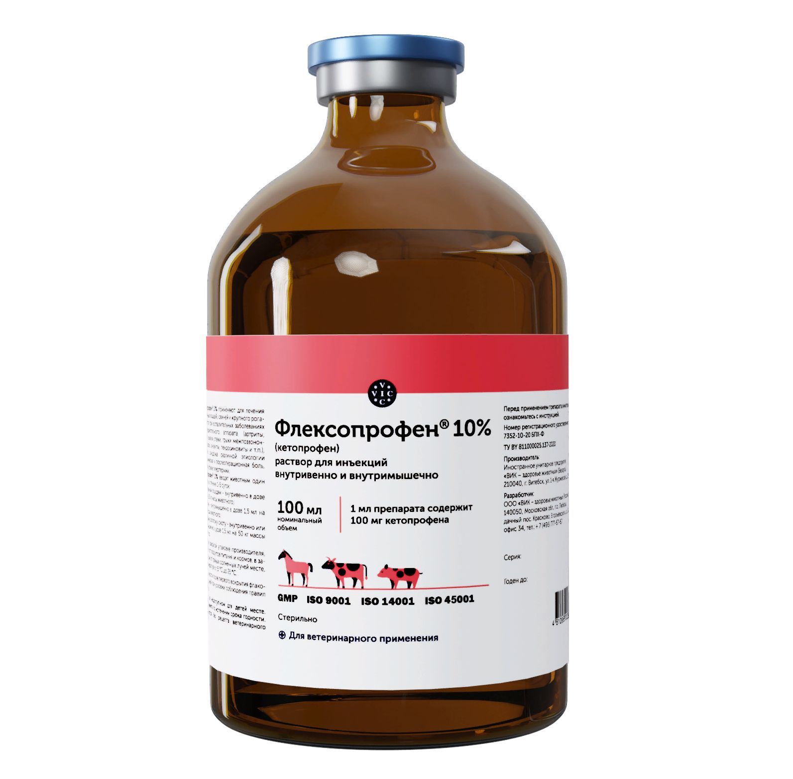 В состав также входят вспомогательные компоненты: очищенная вода, хлорид натрия (поваренная соль) и стабилизаторы. Они обеспечивают длительный срок хранения, лучшее усвоение активных веществ и их безопасное выведение из организма. Препарат выпускается в виде непрозрачного раствора коричневого цвета с приятным клубничным ароматом, что облегчает его скармливание.