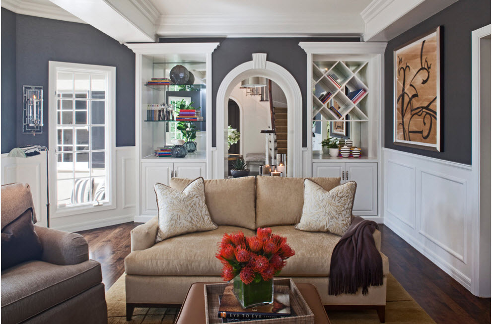 Преимущество перегородок, созданных в виде стеллажей в том, что их можно использовать в качестве системы хранения. В некоторых случаях именно эта опция становится определяющей в выборе мебели для интерьера, даже без необходимости создания ограждения того или иного функционального сегмента. Не перечислить всего, что можно хранить на полках стеллажа – от традиционных книг до предметов коллекционирования.