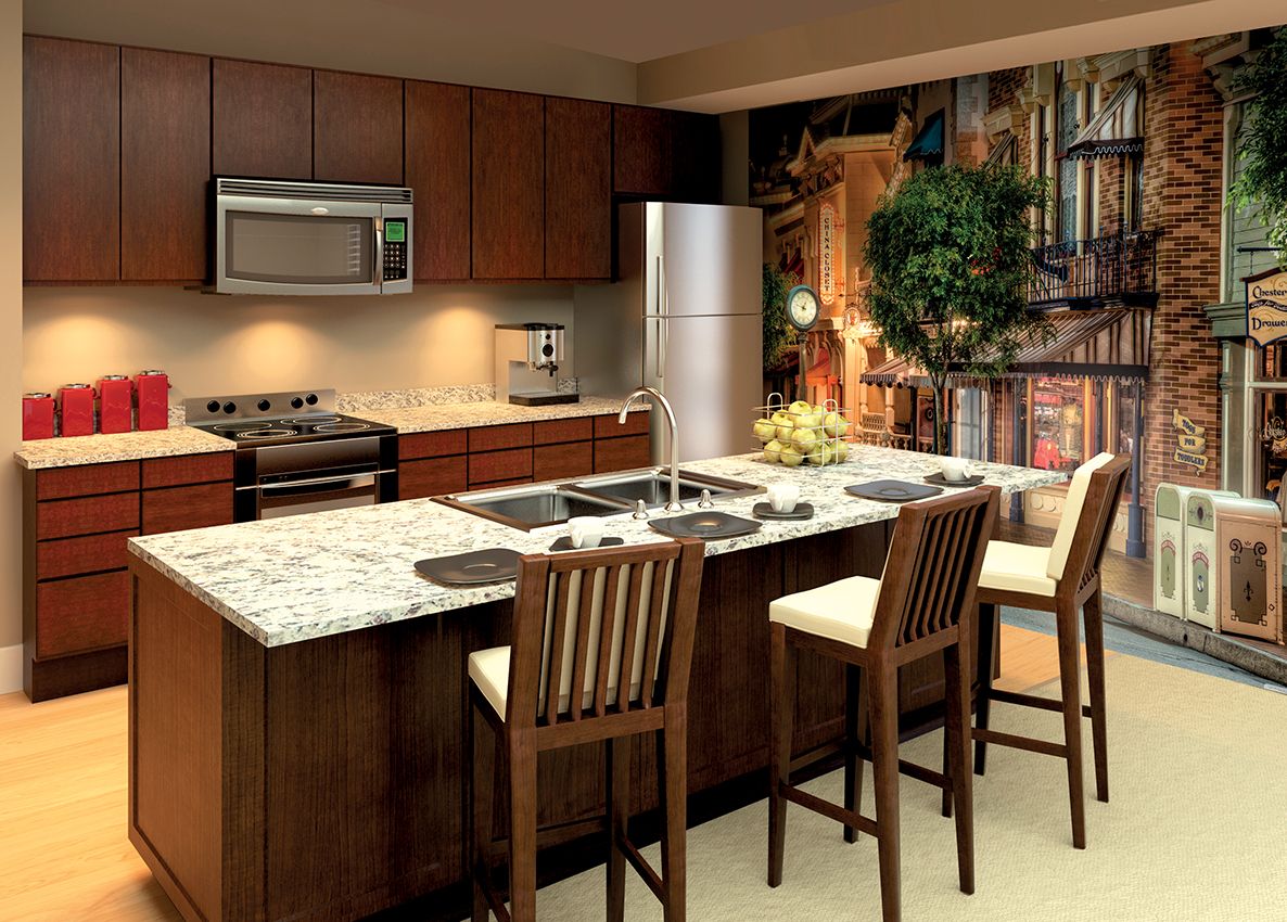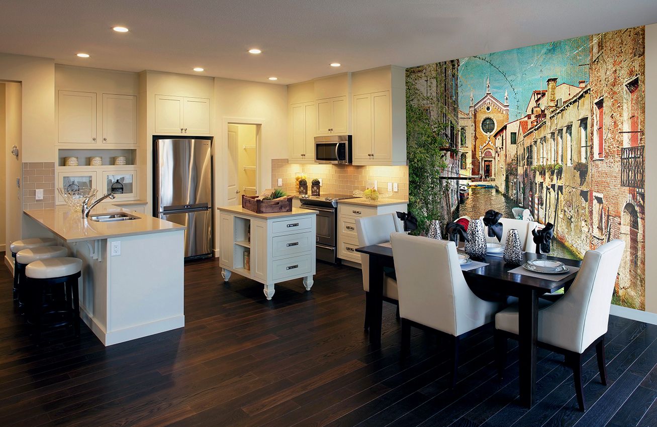 Вдохновение для нового подхода часто приходит из западного кинематографа, где в интерьерах нередко можно увидеть плакаты с автомобилями или панорамами мегаполисов. Этот урбанистический стиль универсален и гармонично вписывается во множество дизайнерских концепций. Сегодня он стал одним из трендов в оформлении кухонь.