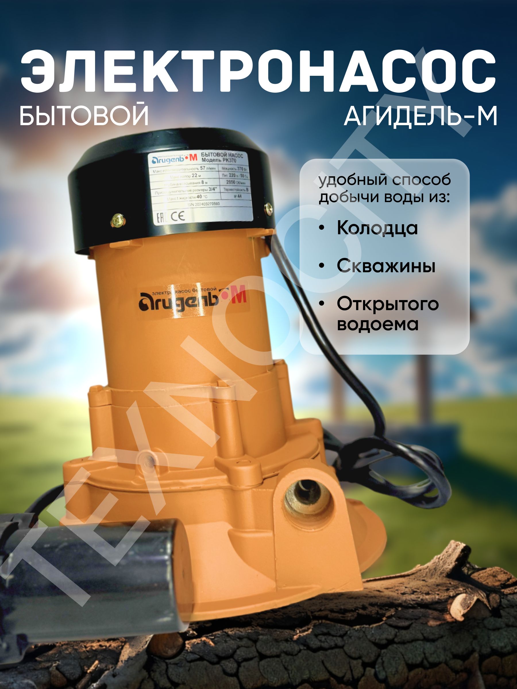 Современная модель Агидель М производится в Китае. Ее легко узнать по темно-оранжевому корпусу и пластиковой крышке с вентиляционными отверстиями, которые необходимы для охлаждения двигателя, склонного к перегреву. Несмотря на то что двигатель стал легче, насосная часть осталась прежней. Важно помнить, что эта модель работает только в вертикальном положении и требует предварительной заливки водой.