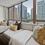Не менее популярный вариант установки дивана вне обеденного сегмента – у стены с окном или окнами. Учитывая высоту спинки дивана, его целесообразно устанавливать у стены, имеющей окно, таким образом, поучится использовать сложную зону с пользой и для модели с раскладным механизмом будет достаточно места для превращения мест для сидения в зону для ночлега.