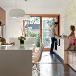 Второй вариант установки дивана в кухне – отдельно от обеденной группы, у стены. Диван используется исключительно как место для отдыха (может также использоваться для обустройства сальной зоны) и у стены устанавливается для того, чтобы занимать как можно меньше свободного пространства кухни.