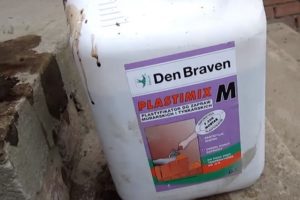 В рассматриваемом примере в качестве пластифицирующей добавки в бетон использовался вот такой раствор компании «Den Braven». По опыту мастера, его добавляют по 250 мл на каждый мешок цемента. |