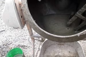 Затем досыпают одну часть гравия (щебенки) – чтобы тяжелый материал обеспечил хорошую очистку стенок бетономешалки и способствовал лучшему разведению пластификатора. |