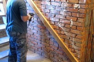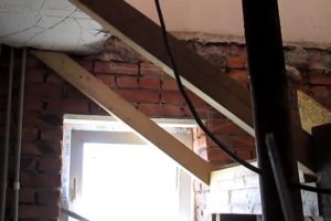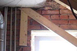 Здесь – стена, так что крепление проводится нагелями — две — три штуки. После окончательного закрепления перемычки временные подставки следует сразу демонтировать. |