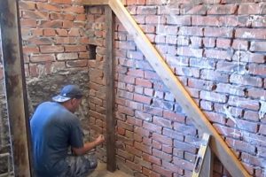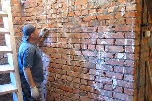 ![]() | Любая порция выложенного раствора тут же распределяется мастерком и «штыкуется» — протыкается мастерком или обрезком арматуры.