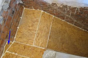 С одной стороны направляющей для правила при разравниваниии бьетона станет служить панель верхней ступени марша. А к стене можно на этом же уровне закрепить ну хоть тонкую ровную полоску ОСП – этого будет достаточно. Ее потом несложно будет удалить послое первичного застывания раствора. |