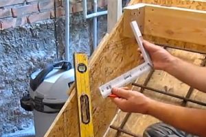 ![]() | Теперь необходимо совместить боковой край панели с нанесенной вертикальной линией на бортике опалубки. |