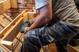![]() | Затем, после дополнительного контроля положения перемычки по вертикали и горизонтали с помощью строительного ровня, крепится ее противоположная сторона.