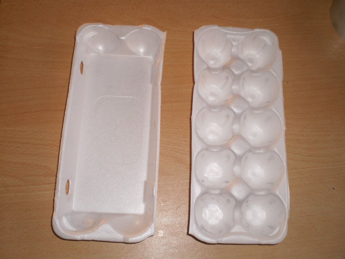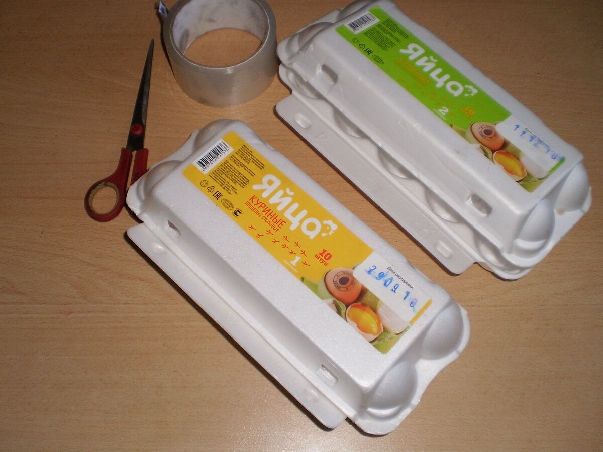 1. Берем один лоток для яиц, делим его на две части, снимаем крышку (она будет играть роль поддона). Сделайте то же самое для другой доски.