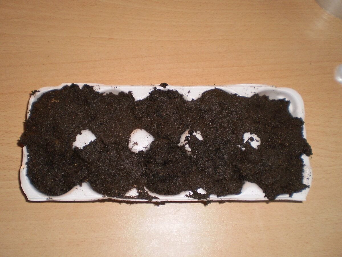 9. Предварительно протравив в марганцовке или перекиси водорода, а затем замоченные и проклюнувшиеся семена, высадить по семени в каждую ячейку на глубину 1 см и опрыскать из пульверизатора.