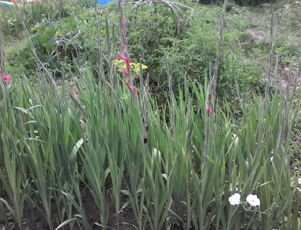Грядка гладиолусов из деток второго года. Фото Валерия (ok_530542030248) 9. Может ли у темного сорта гладиолуса быть светлая клубнелуковица?