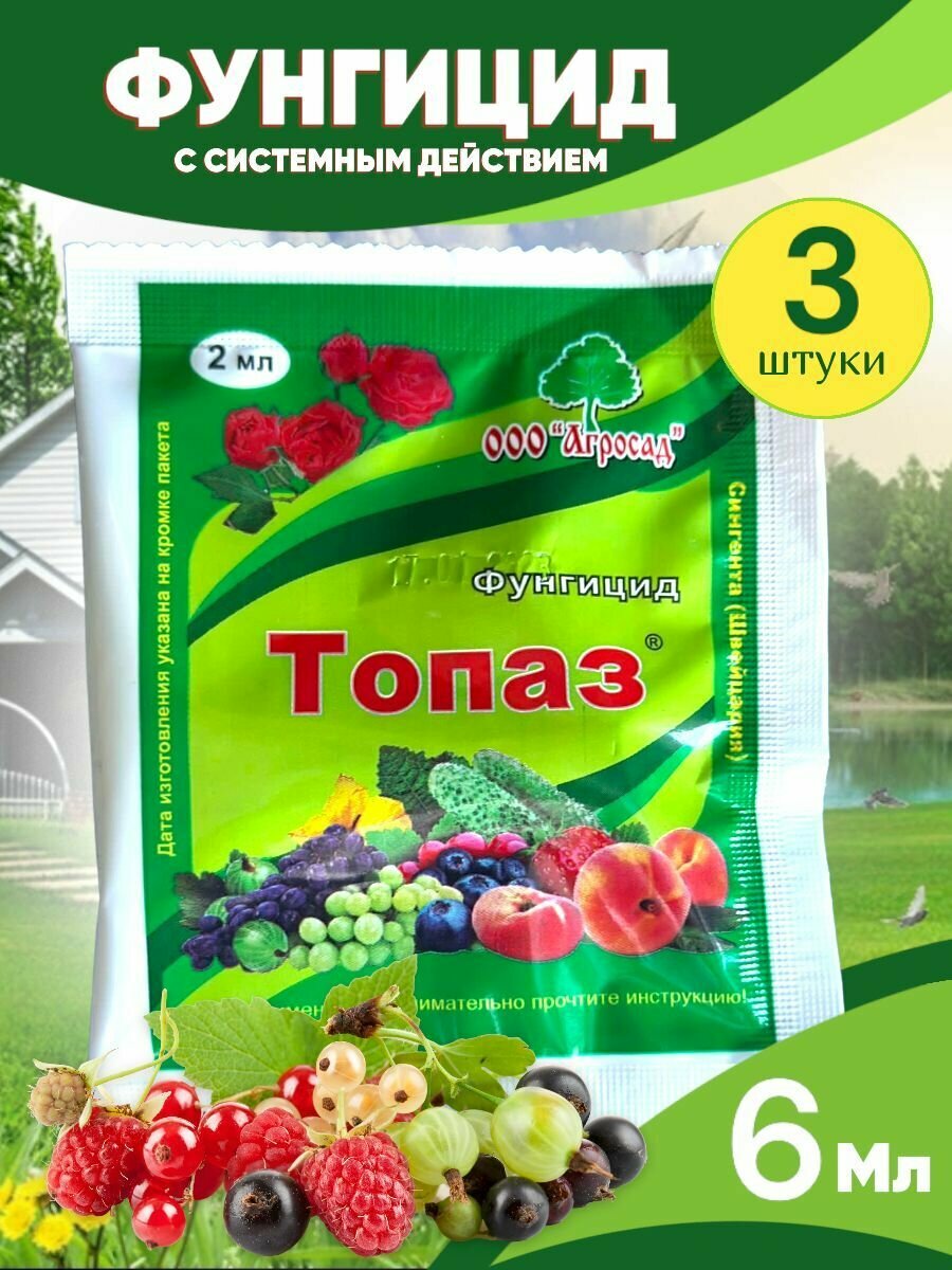 Топаз — это торговое название химического препарата на основе пенконазола, который относится к классу триазолов. Для частных хозяйств он обычно выпускается в удобных ампулах объемом 2 или 5 мл, а для сельскохозяйственных предприятий — в более крупной таре. Препарат представляет собой концентрированную суспензию, которую перед использованием необходимо развести в воде.